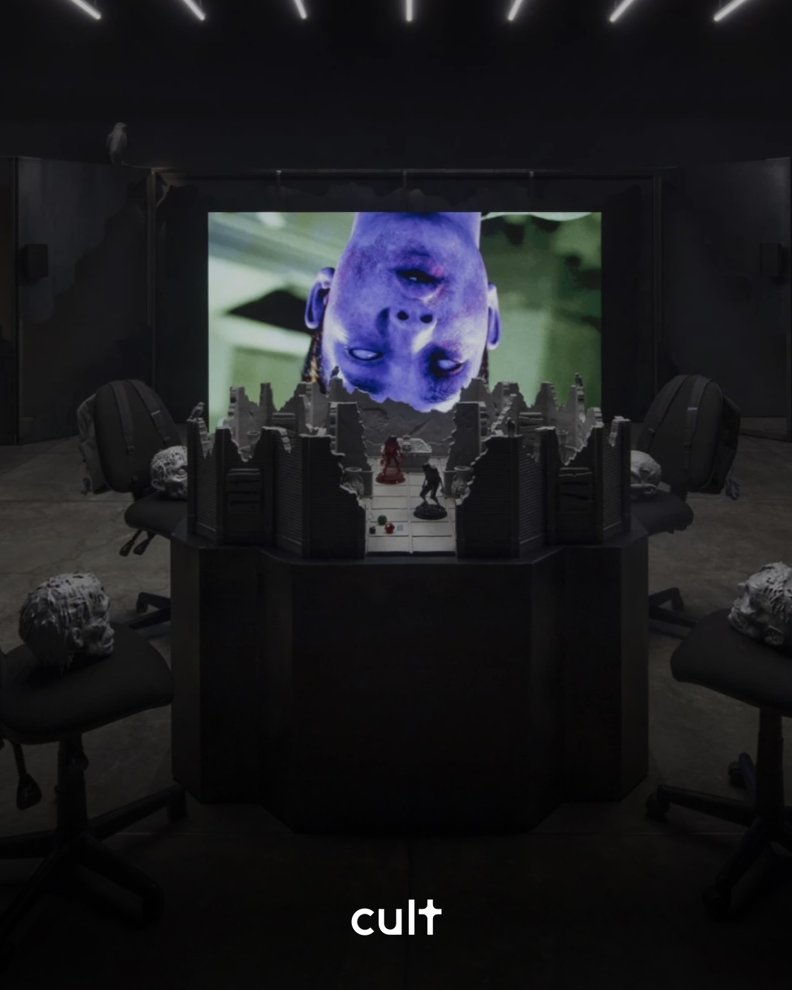 The installation’s sculptural perimeter—backpacks perched on office chairs, resin heads slumped like discarded NPCs—evokes a classroom after an evacuation, or perhaps a LAN café abandoned mid-raid. The tabletop dungeon, populated by transparent figurines frozen mid-quest, functions as a mausoleum for suspended adolescence. It’s not nostalgia; it’s an autopsy. Roberts treats youth culture as a speculative ruin, a terrain map built on “economic systems constructed on death,” where fantasy becomes less escapist than diagnostic.